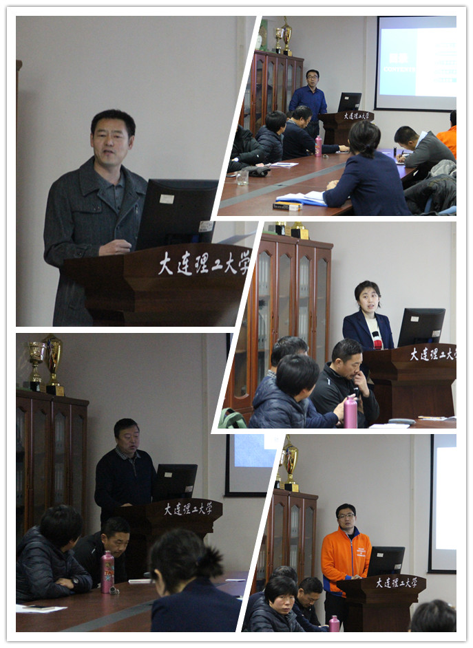 1月12日上午,体育教学部在部会议室召开2018年度体育教学部内设机构负责人述职大会,体育教学部党政班子成员、教授、科级干部、内设机构负责人、教师代表共30余人参加了会议,会议由体育教学部李芃松主任主持。会上,体育教学部科级干部、内设机构负责人共13位老师,从岗位履职情况、重点推进工作、存在不足及整改措施等几个方面对自己本年度所承担工作做以总结梳理。述职报告通过详实的数字、具体的事例、生动的图片反映出体育教学部2018年在教书育人、科学研究、群体竞赛、行政管理等工作的真实写照,也展现出大工体育人的工作风采。