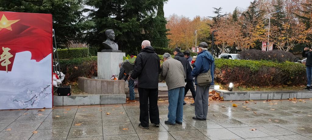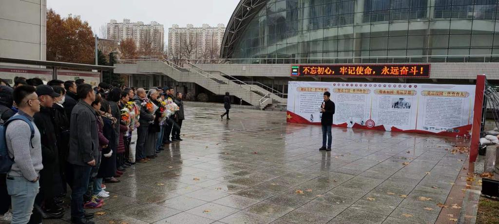 清晨,雨雪纷纷,枝叶飘零。刘长春教授的家人、学生、体育与健康学院的教授、研究生、运动员齐聚刘长春雕塑广场,举行缅怀默哀仪式,并由家人、学生、在校教师代表献花。广场设立了刘长春教授事迹图片展板,从“初露锋芒、振兴体育”、“坚贞不屈、单刀赴会”、“情系祖国、奥运梦想”、“重返校园、体育育人”四个板块介绍了刘长春教授的生平事迹,重点宣传他的爱国主义情怀和体育精神,激励所有人以他为榜样,托起中华民族伟大复兴的希望。