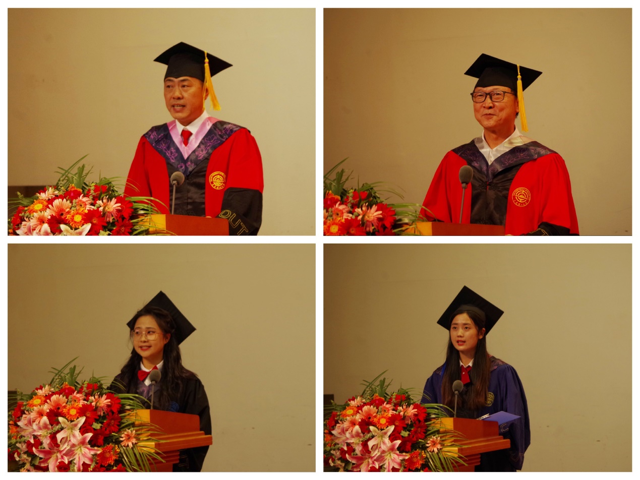 2021届毕业代表、硕士研究生魏晖、本科生王玉莹分别发言,表达对学校、老师的不舍和感谢,决心不负学校培养、不负恩师教诲,做社会栋梁,为母校争光。