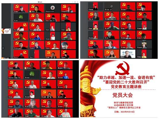 为落实学校第十四次党代会精神,以习近平新时代中国特色社会主义思想为指导,全面贯彻落实党的十九大和十九届历次全会精神,深刻认识“两个确立”的决定性意义,增强“四个意识”、坚定“四个自信”、做到“两个维护”,进一步振奋精神、凝聚力量,激励和动员学院全体党员,体育与健康学院党委主办,运动训练教工党支部、“双带头人”教师党支部书记工作室承办,邀请大连市委党校党史党建教研部孙高杰副教授为全体党员开展以中国共产党百年奋斗的重大成就和历史经验为题的党史学习教育讲座。出席会议的有体育与健康学院党委书记刘立清、院长李芃松以及全体师生党员。