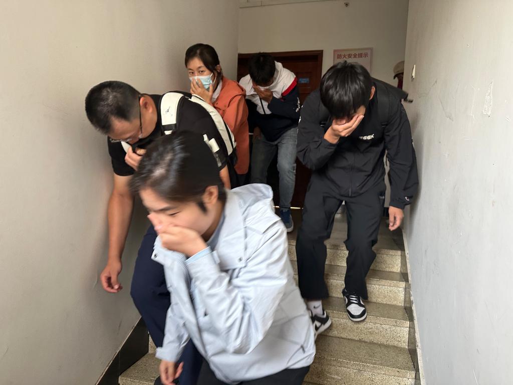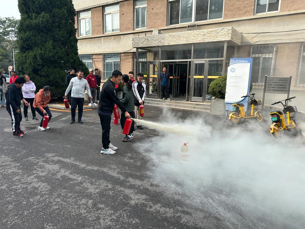 讲座后,葛老师组织师生来到学院内燃机工作场所,进行安全演练。从逃离现场、扑灭火源、消防用具使用等多个方面,带领大家演戏实操,提高师生扑救初期火灾能力和组织疏散人群能力。
