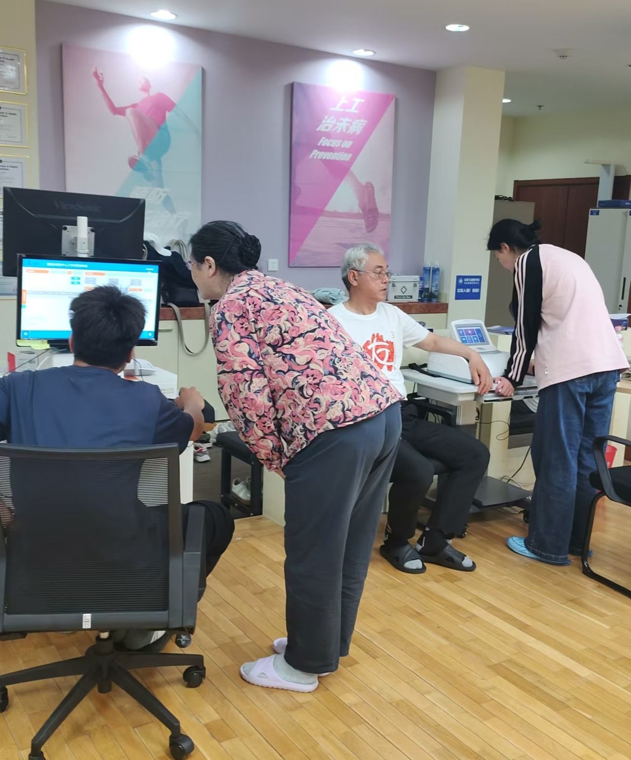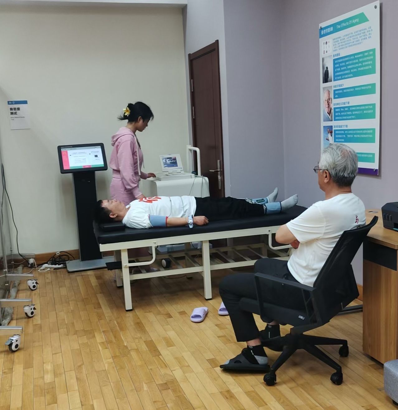 在运动健康促进中心,老师和同学们为校友们提供了体质健康检测服务,耐心讲解检测结果并提供个性化健康建议,针对部分有亚健康状况的校友进行了细致的评估与指导。这一举措不仅体现了学院对校友健康的深切关怀,也展现了学院在运动健康促进领域的丰硕成果。校友们对运动健康促进中心的工作给予了高度评价,他们一致认为,在高校中开展体医融合、体质监测等工作至关重要,这不仅有助于提升教职工的幸福健康指数,更为培养健康学子提供了有力保障。