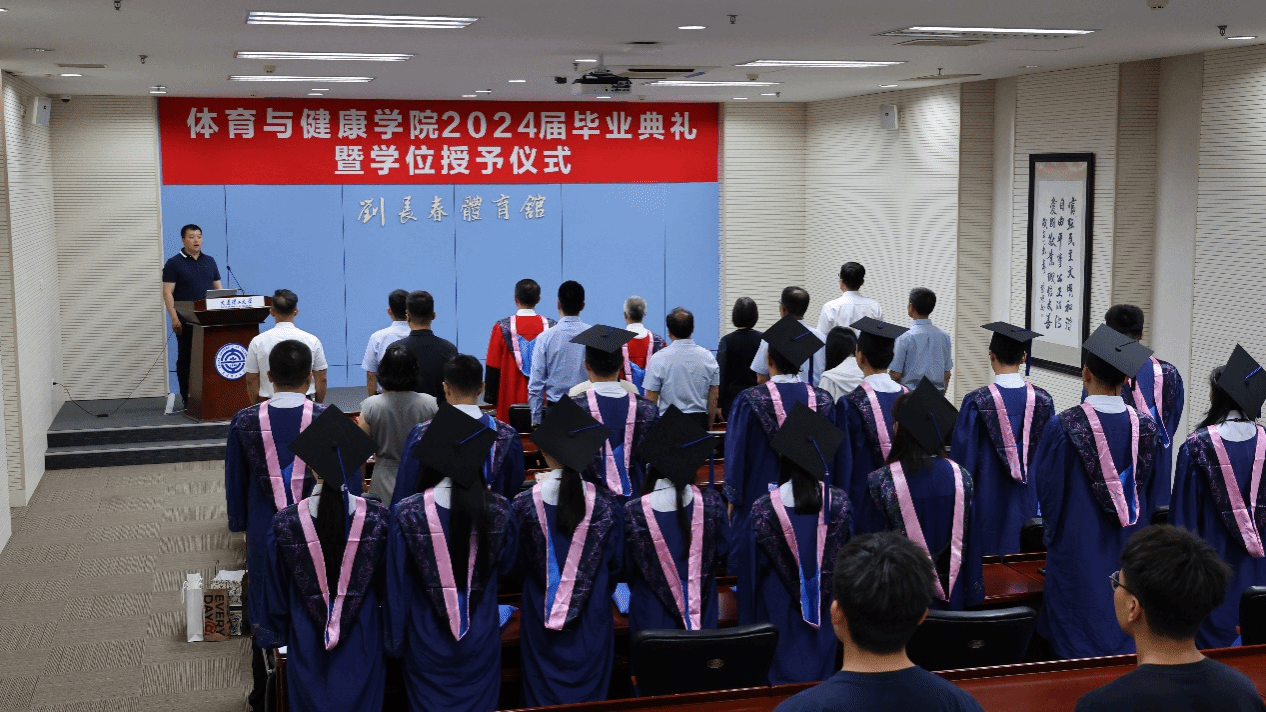 在威严神圣的国歌和慷慨激昂的校歌中,体育与健康学院2024届毕业典礼暨学位授予仪式正式拉开帷幕。