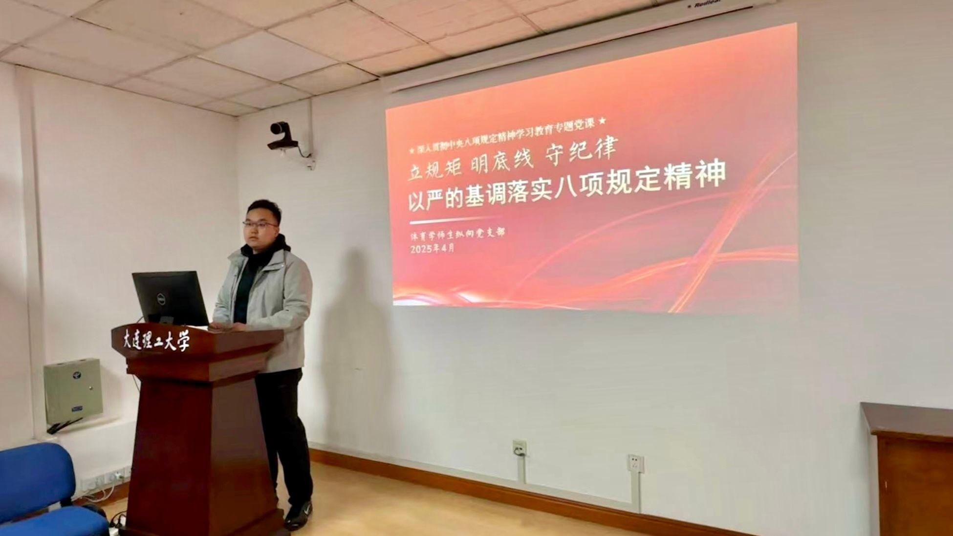 深入贯彻中央八项规定精神学习教育,推动党员队伍作风建设常态化、长效化,4月27日,体育学师生纵向党支部召开《立规矩 明底线 守纪律,以严的基调落实中央八项规定精神》专题党课,支部全体党员共同参与本次学习。